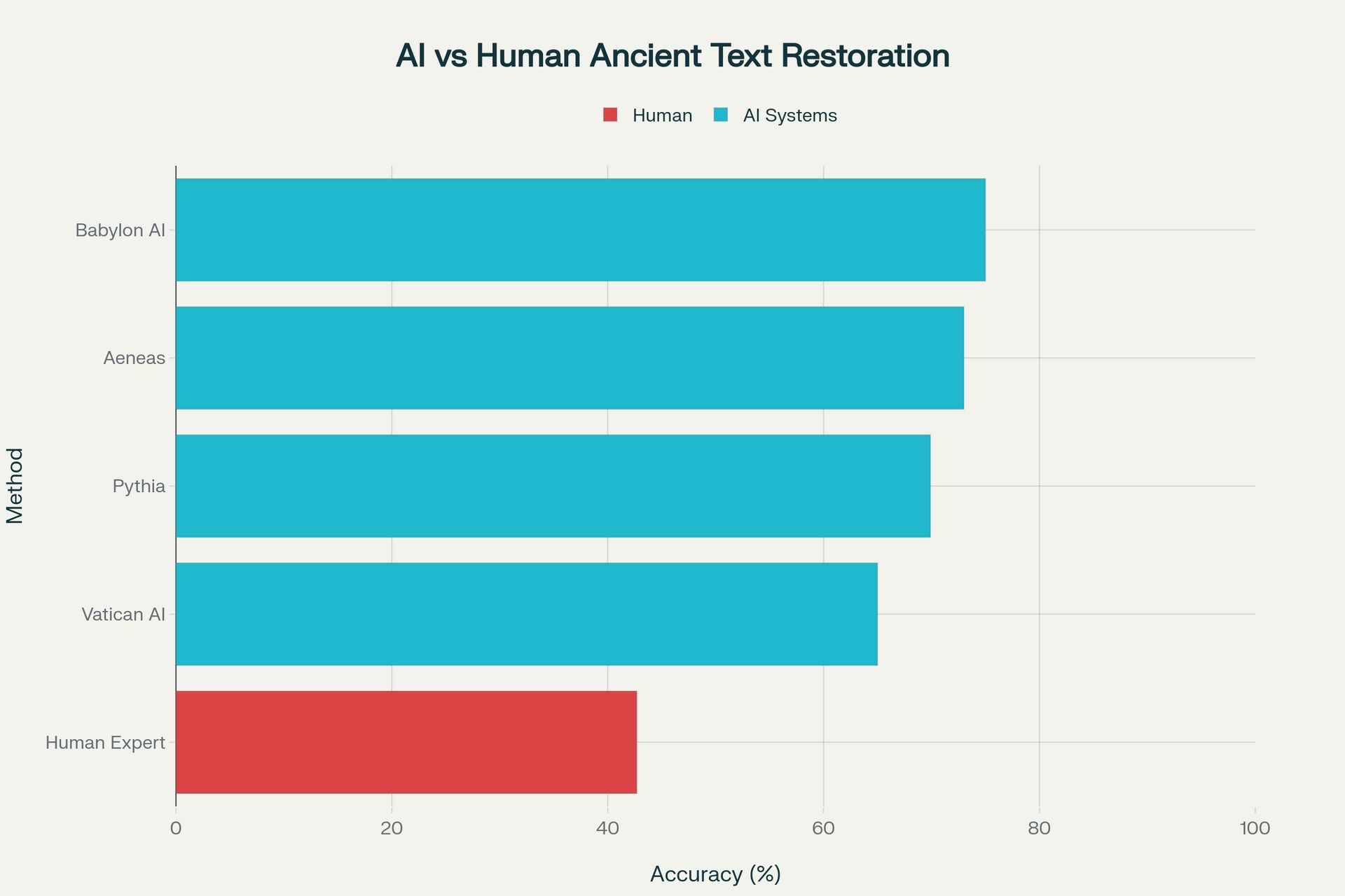 AI vs Human Accuracy in Ancient Text Restoration - Comparison of different AI systems against human expert performance.