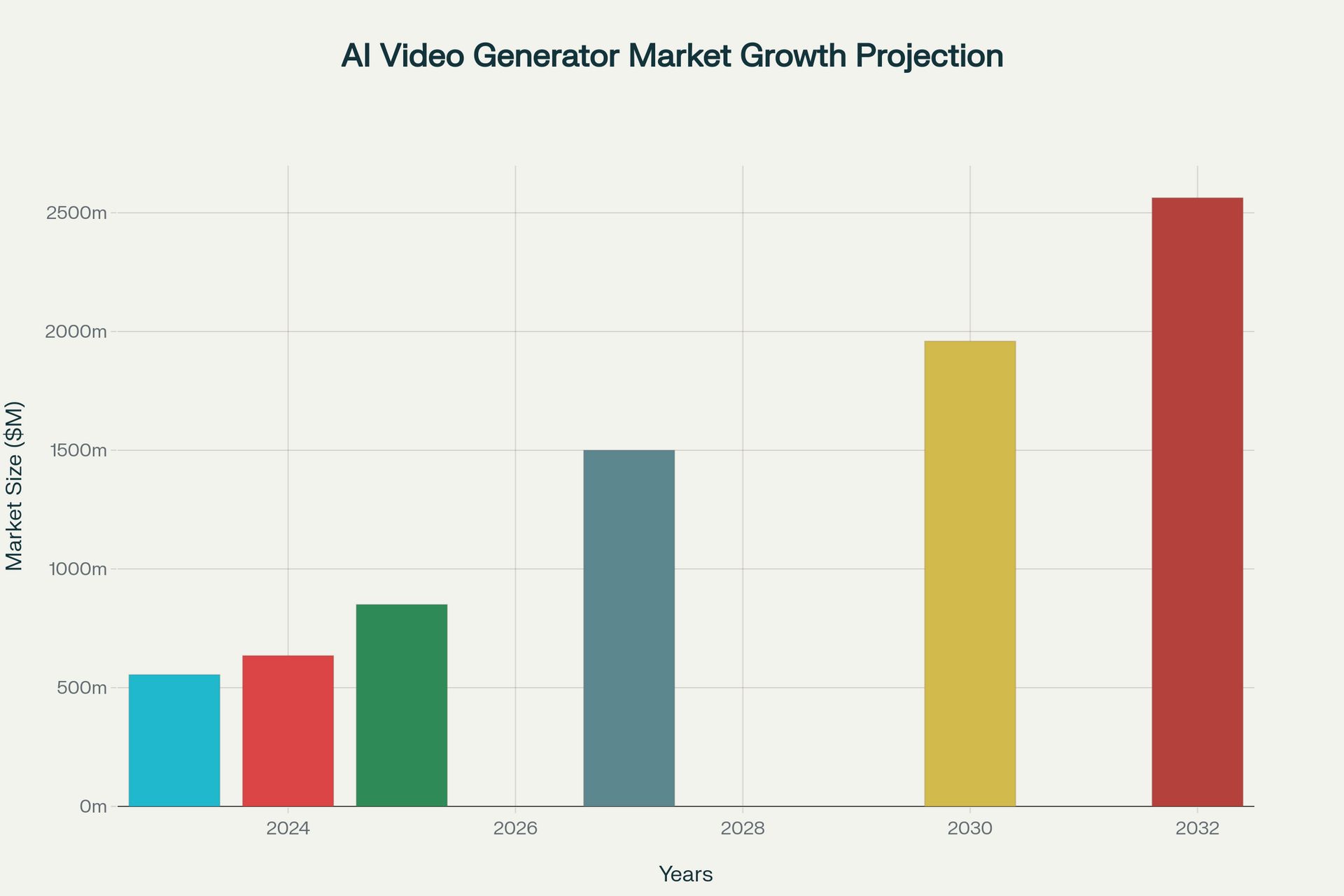 Market growth projection for AI video generator industry showing significant expansion from 2023 to 2032