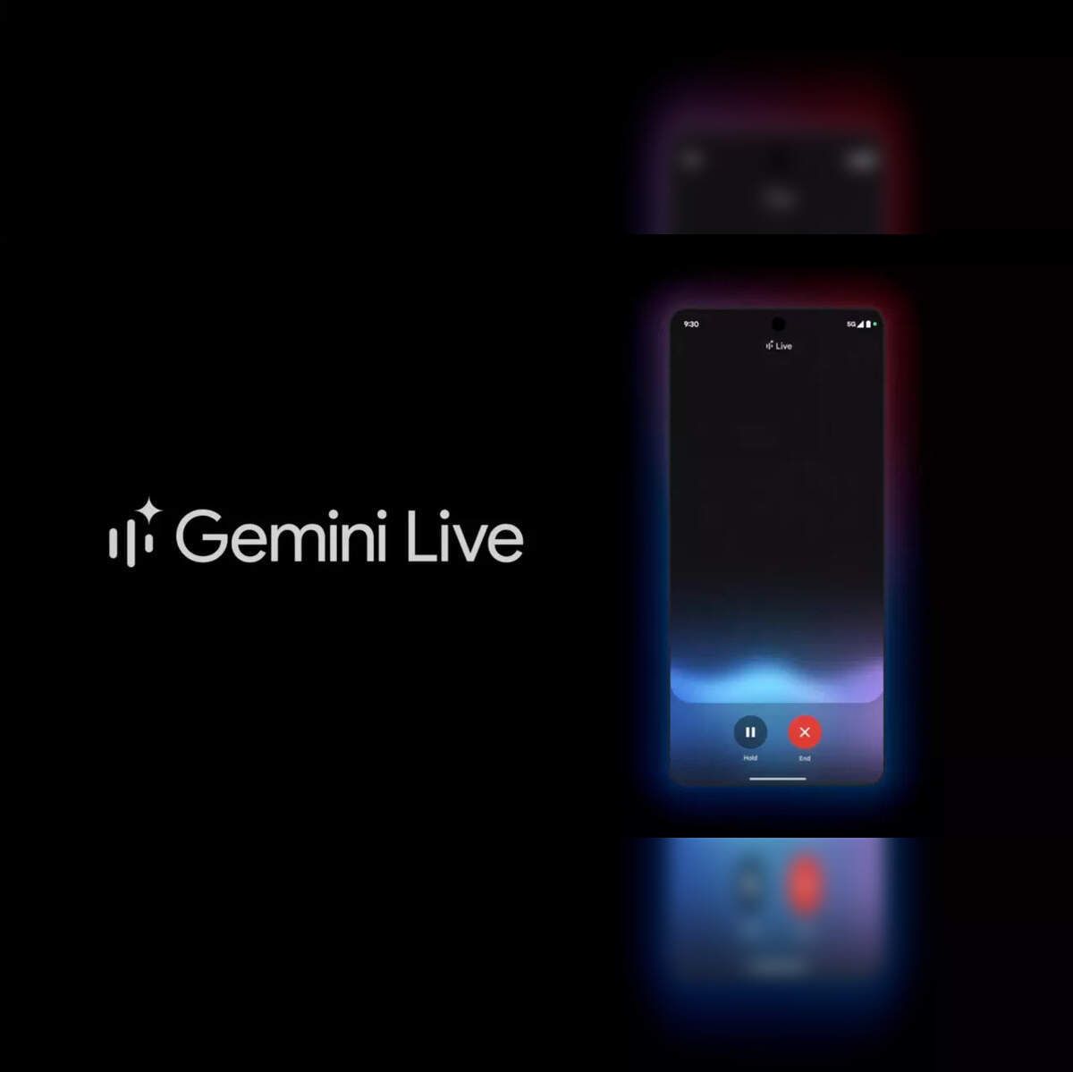 Gemini Live AI assistant interface on a smartphone showing call controls and voice interaction visual