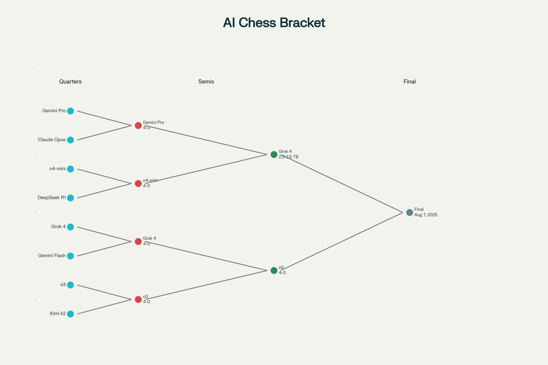 Kaggle Game Arena Tournament Bracket: The path to the championship between Grok 4 and o3