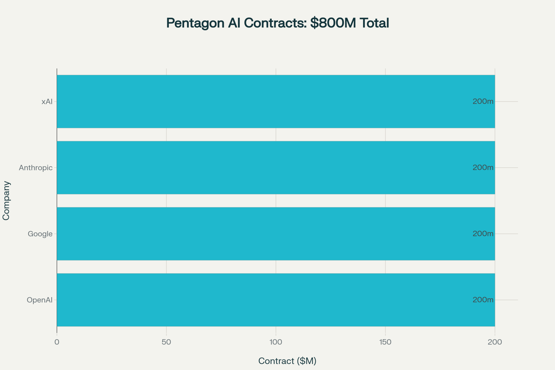 Pentagon's $800M AI War Chest: Equal $200M contract ceilings awarded to four leading AI companies